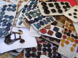 Botones de nácar, azabache, opalina, vidrio, celuloide, madera, bronce, etc..