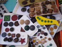 Botones de nácar, azabache, opalina, vidrio, celuloide, madera, bronce, etc..